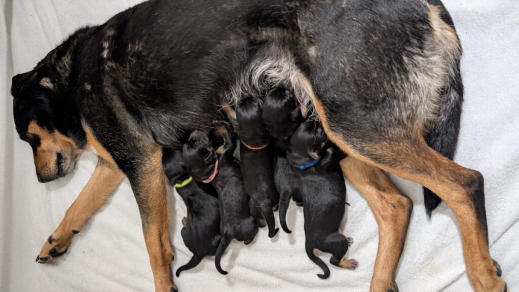 We chose Enzo as a sire for Tia because he is a natural dog with not too much eye. He combines strength, keeness to work, mental resilience, sociability, and a good dose of cleverness. We expect this mating to produce pups with high potential for cattle work, while also being reliable and uncomplicated partners in everyday life.
